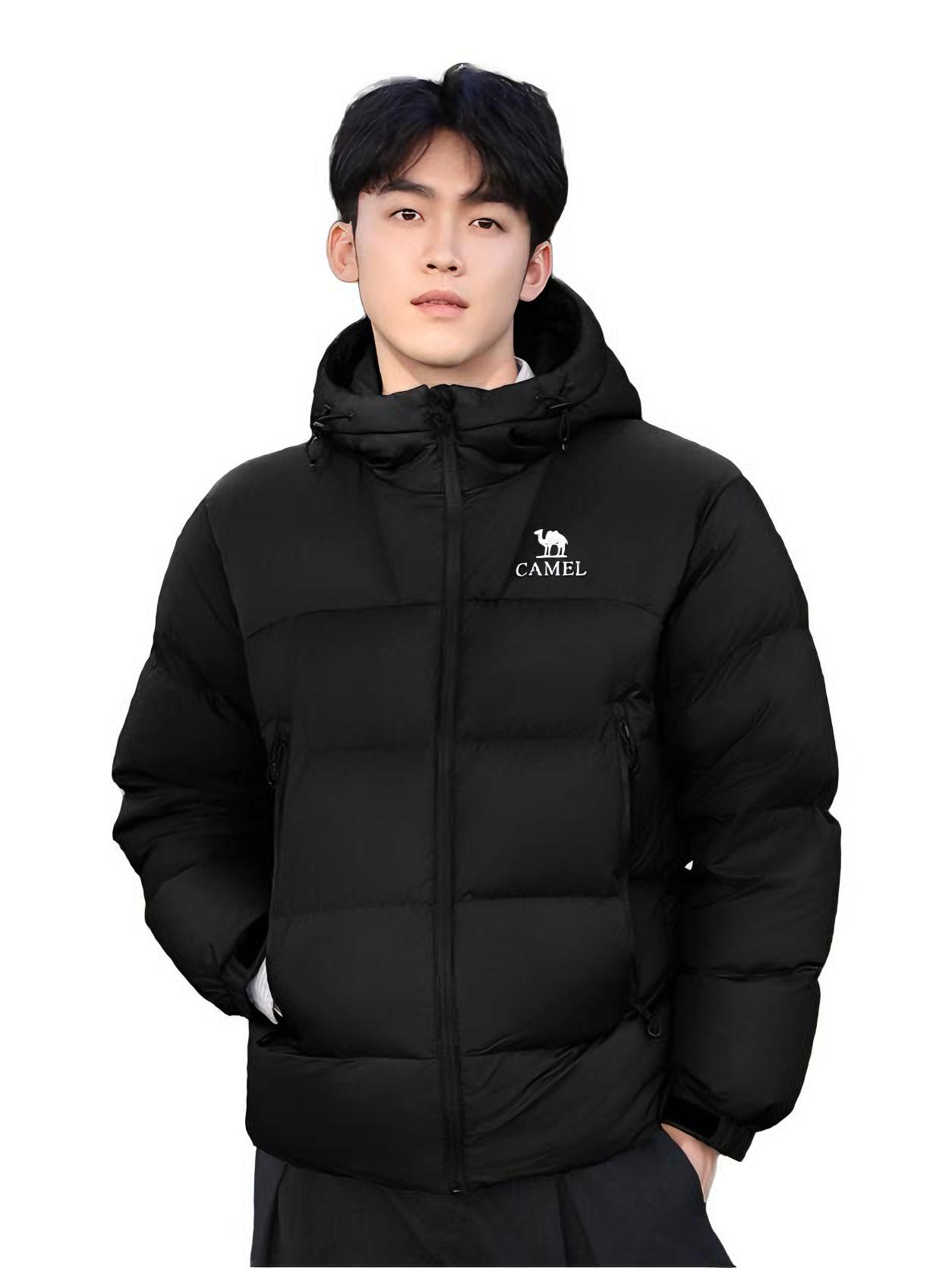 Camel/骆驼 2025AW 火山2.0机能版暖绒系列拉链连帽加绒加厚长袖羽绒服 M15CAEC058 幻影黑