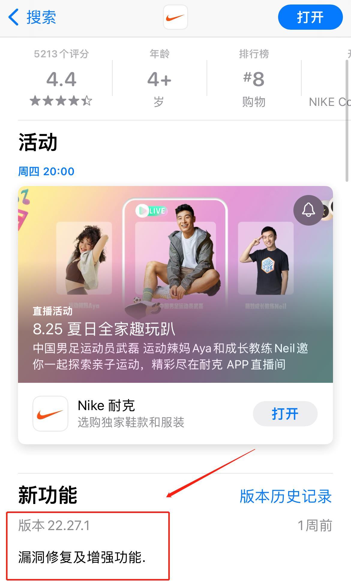 Tips:大家务必下载最新版Nike App(版本:22.27.1),修复漏洞并增强功能,购物更方便!