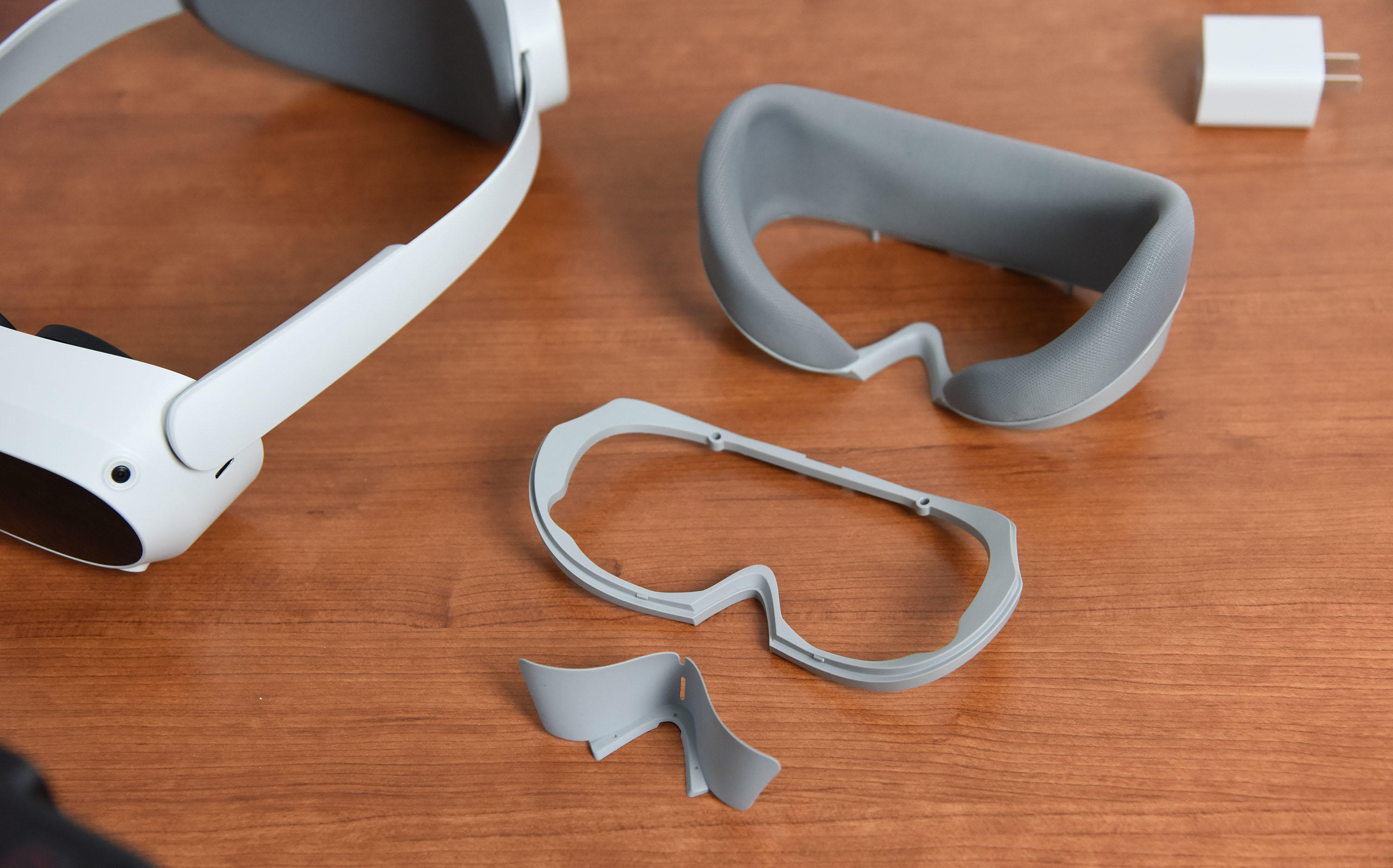 PICO 4的可替换头戴泡棉面罩改为了磁吸式,可以快速更换。附送了眼镜支架可以增加眼睛到透镜的距离方便佩戴眼镜的用户。