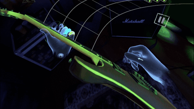 PICO 4通过上述的RGB彩色摄像头及红外光学系统,实时捕捉追踪用户的双手,识别手势动作,让用户提前感受未来虚拟现实和游戏的裸手控制的交互体验,系统内已有《空气吉他体验版》上线,可以结合手势识别玩法进行演奏体验。
