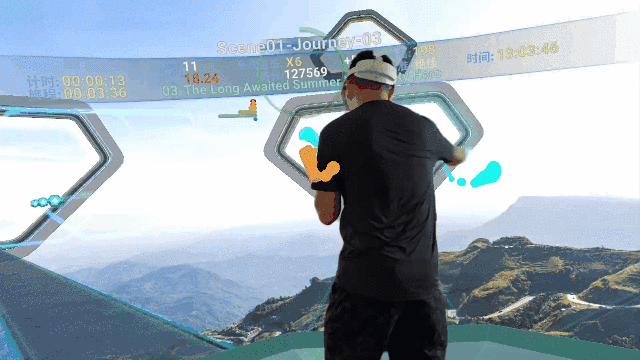 图为用混合现实录制功能录制的《Hitstream》游戏