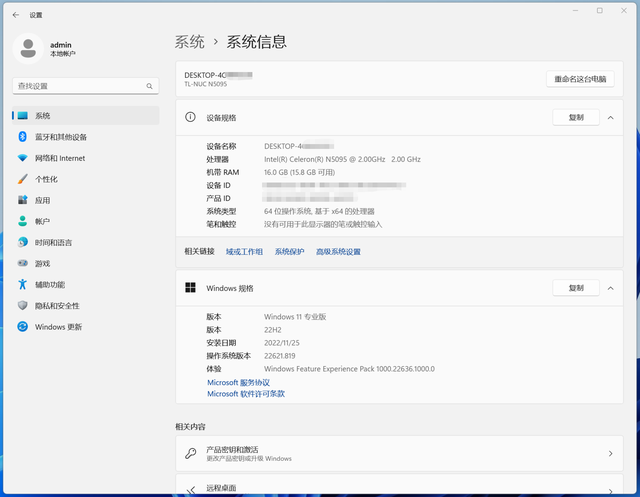 以N5095的凌珑M为例,使用系统为Windows11专业版,版本号为22H2。