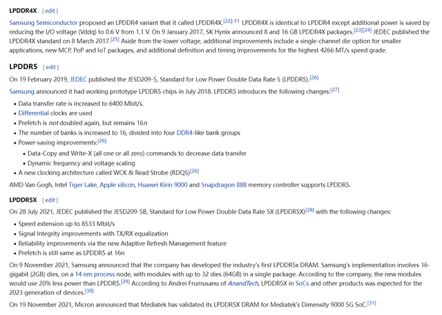 操作过手动内存超频的朋友一定知道,内存性能和电压直接挂钩,目前DDR4和DDR5范畴中,JEDEC将低功耗/移动端内存按照电压分为普通DDR、LPDDR和LPDDRX三种标准。