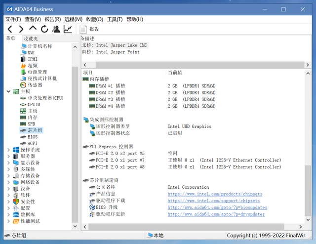 另外比较有趣的一点是网卡,通过AIDA64可以看到网口信息,新款的TS-464C将之前的8125B替换成了更为稳定+性能略微有所提升的i225-V,这点真不错。