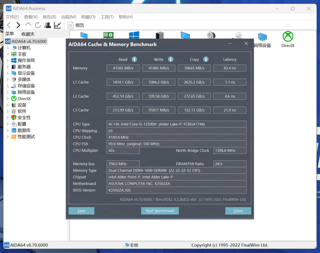 可以看到DDR4+LPDDR4X混用的双通道情况下,实测数据贴近Intel对i5-12500H定义的极限能力,IO能力比上面凌珑M的单通道16G翻了接近两倍。