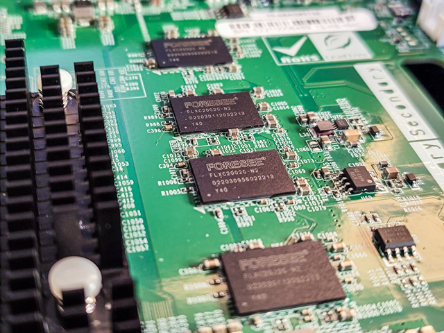 板载就比较简单了,通过焊接方式将封包好的内存颗粒直接焊在主板上,手机、苹果笔记本、部分NAS(主要是ARM)产品都在使用这个方案: