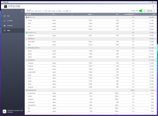 不吹不黑,威联通NAS的待机内存利用率在所有NAS系统中算比较高,毕竟基础服务就有很多,更何况还有QMaggie、HBS3这类存储刚需套件。