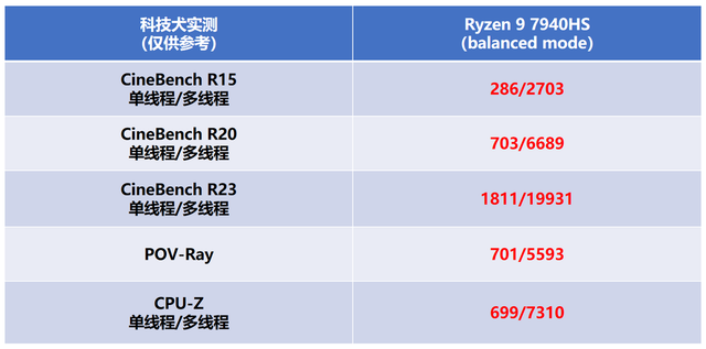 通过一张表格来快速了解新款灵刃14搭载的AMD锐龙9 7940HS的性能表现,具体如下图: