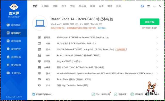 科技犬通过理论性能测试、实际游戏测试、稳定性测试来快速了解一下新款灵刃14(的实际性能表现,同时通过鲁大师对新款灵刃14的参数配置方面进行快速了解,具体如下图:【注:性能测试均在balanced mode下进行】