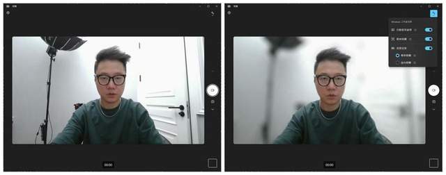 左侧:未开启 右侧:开启 自动画幅、目光接触、背景特效