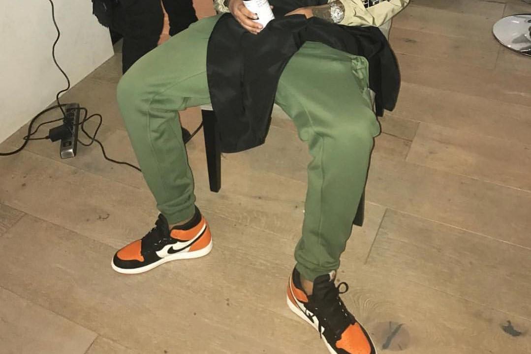 smokepurpp 上脚的这款鞋,无需多言,经典的AJ1鞋型搭配上大热配色,十分抢手。