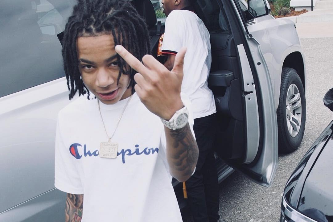 smokepurpp 上身的这款 Vlone 长袖,来自迈阿密POP,胸前的 Vlone 字样极具辨识度。
