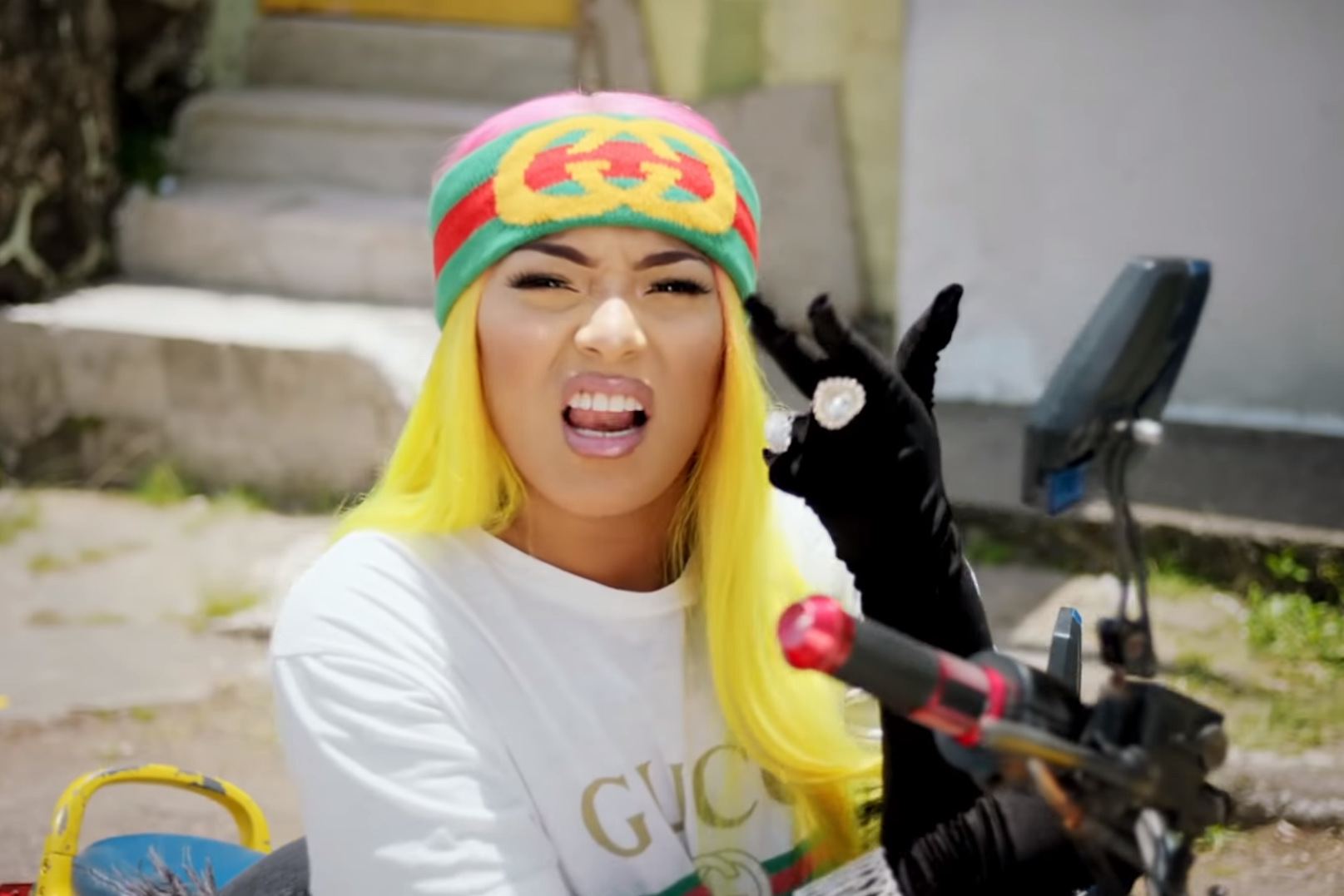 Stefflon Don 头上的这款发带来自Gucci家最新季度的单品,多种颜色采用撞色处理,并与Gucci最为经典的双扣G标结合。