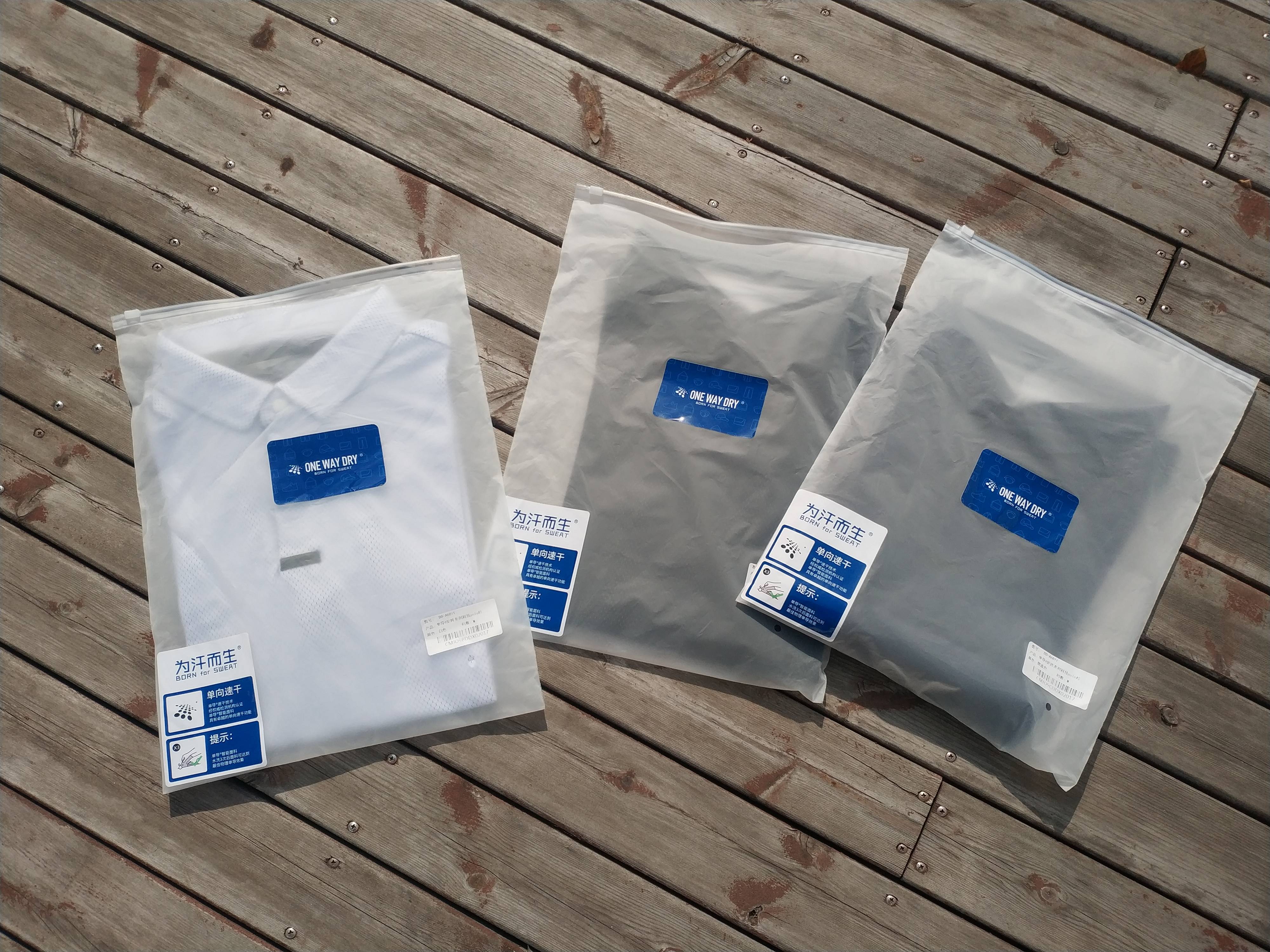 接下的内容,从细节着眼,展示下这款polo衫,包装是一贯的自封袋。袋子上有logo以及单导面料的功能说明。说来去年单导大放异彩之后,市面上的山寨单导出来不少。选购的时候需要认准品牌,如心里没有底,直接问店铺客服索要检测报告等资料。
