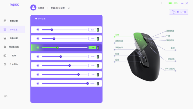 当然了,除了自定义DPI,驱动软件也可以对雷柏MT760系列的具体相应参数等进行自定义设置,包括报告率设置、Windows改指针速度、滚轮滚动行数等,游戏鼠标有的它都有。