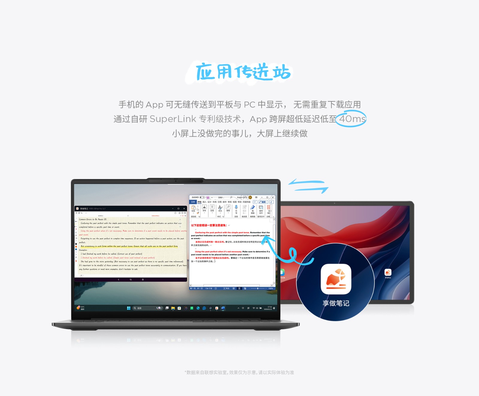 最让人惊喜的是全新超级互联功能,通过Superlink技术实现跨端文件传输,50MB/秒的速度让视频、文档“秒传”,平板还能一键变电脑副屏,写方案时一屏查资料一屏敲文字,效率直接翻倍。搭配手写笔延迟低至9.6ms,记笔记时的纸感体验堪比实体笔记本,JBL四扬声器加杜比全景声,在家就能享受到影院级音效。