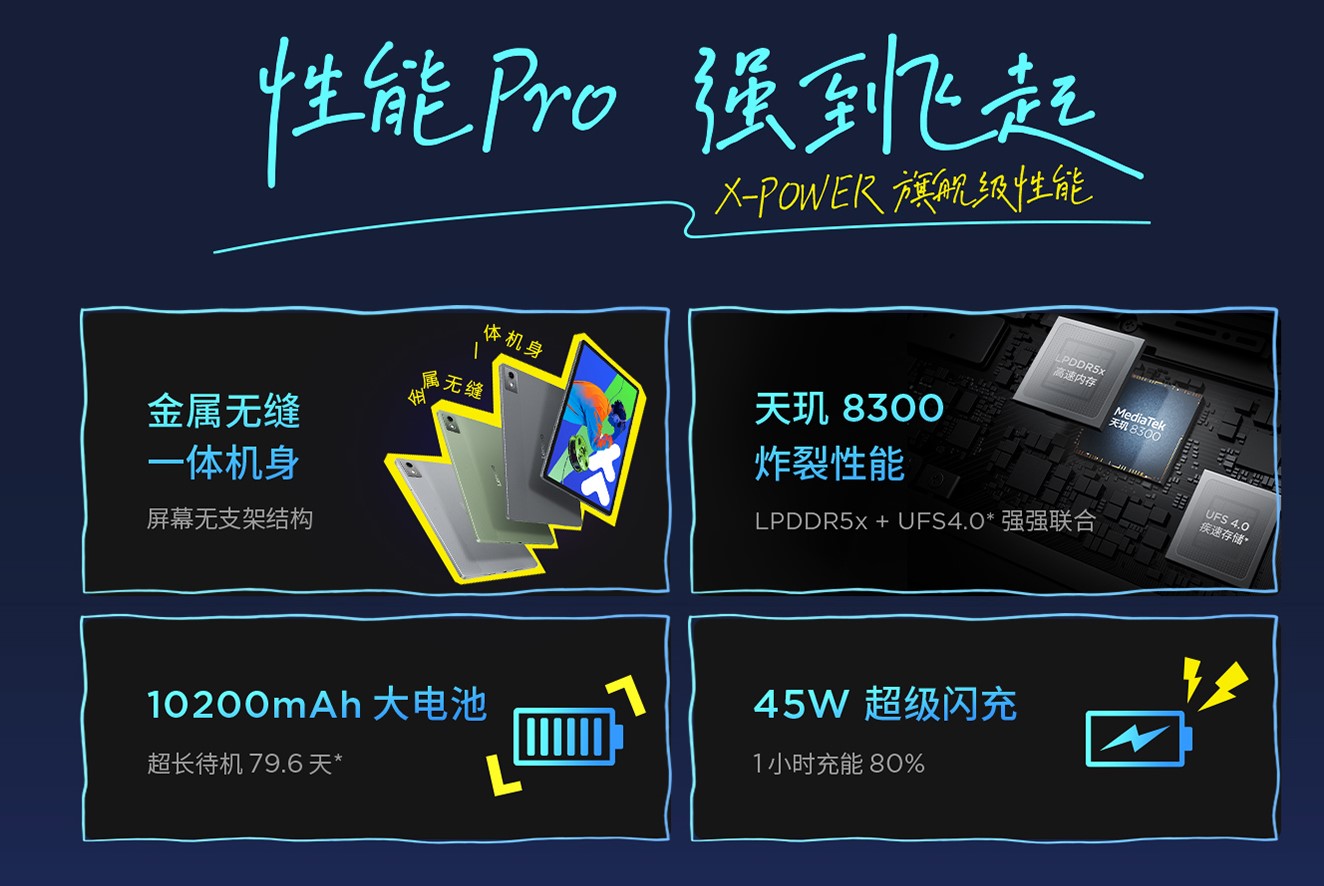 性能上它藏着旗舰级实力,天玑8300处理器搭配LPDDR5X内存和UFS4.0存储,安兔兔跑分轻松突破134万,一边开会议、一边用WPS记笔记,后台还挂着音乐软件,切换起来毫无卡顿感。10200mAh的超大电池太省心,从早8点的办公会议用到晚7点的影音放松,中间穿插4小时文档处理和2小时追剧,电量还能剩不少,45W快充半小时就能回血大半,出差时和笔记本共用充电器,背包都轻了许多。
