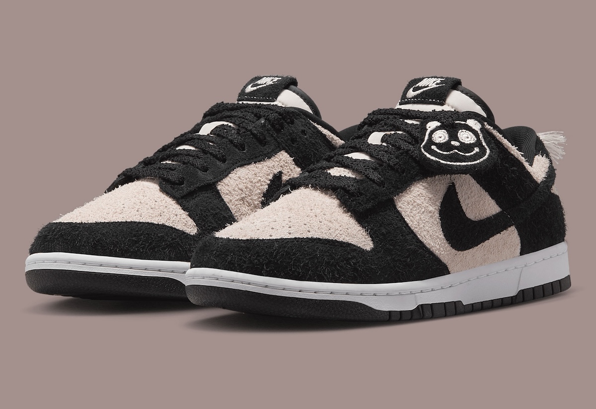 熊猫 Dunk 被彻底玩坏了,这双全新配色依然是熟悉的黑白熊猫装扮,但鞋身细节应该都是第一次见。鞋身、鞋跟加入了流苏设计,绣有 “EST. 1985” 字样,向 Dunk 的诞生年份致敬。其它方面的设计也彰显了与众不同,像是毛绒质感鞋面、以及多处安排上的熊猫脸图案。为其配备了特殊鞋盒,并以黑白配色呈现。按照步骤操作,看样子能折成收纳盒。对于喜欢特别版包装的玩家来说,是一个不错的选择。