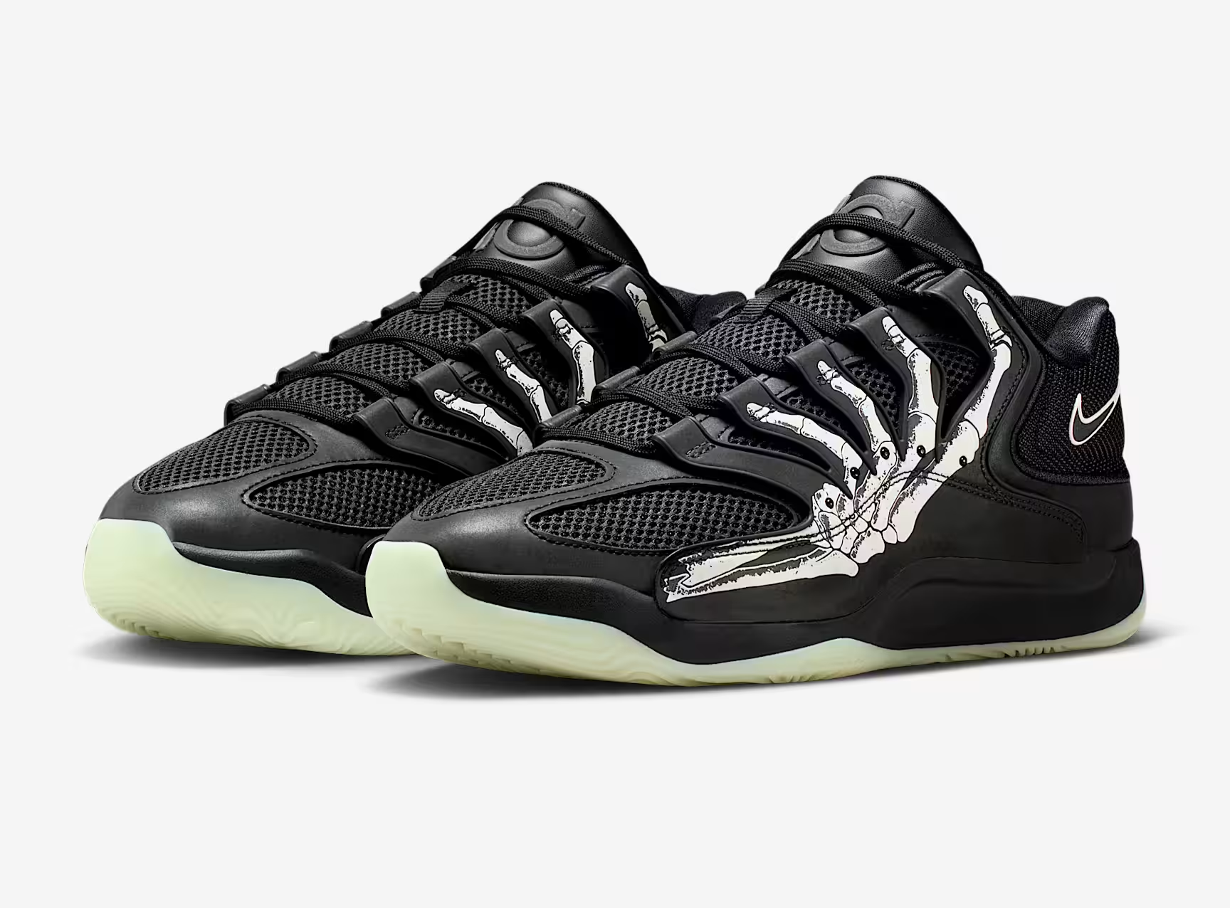 一年一度的万圣节,Nike都会为旗下球星带来的「万圣节主题」配色!这双KD18应该是整个系列里的颜值佼佼者!鞋侧最具辨识度的死神之手,还点缀了死神的头颅,一切都在呼应杜兰特的经典绰号。黑色底色也很好地凸显了骷髅元素,带来更为惊悚的氛围。备受关注的缓震科技方面,则是 Cushlon 中底 + 前掌 Air Zoom,带来极佳的缓震效果。鞋面则是多种材质的拼接组合,结合 TPU 笼,在提供稳定性和支撑性的同时,以网眼材质保障透气性能。