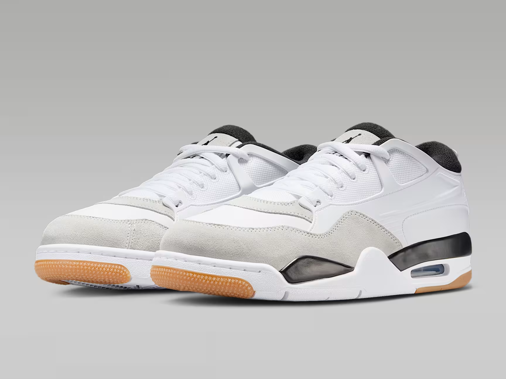 作为 Air Jordan 4 衍生鞋型的 Air Jordan 4 RM 凭借性价比成为许多玩家的上脚新选择。不仅继承了诸多经典元素,同时也降低了鞋帮,加厚了鞋面填充,并注入了一些新的视觉元素。灰色绒面革细腻地包裹着挡泥板,质感十足;白色皮革则优雅地覆盖于鞋头部位,简洁大方;中足部分则采用网眼布填充,不仅增强了透气性,还为整体设计增添了一份灵动与轻盈。鞋领衬里、标志性的飞人品牌标识以及中底部分均大胆采用黑色,让鞋子更具层次感与时尚感。