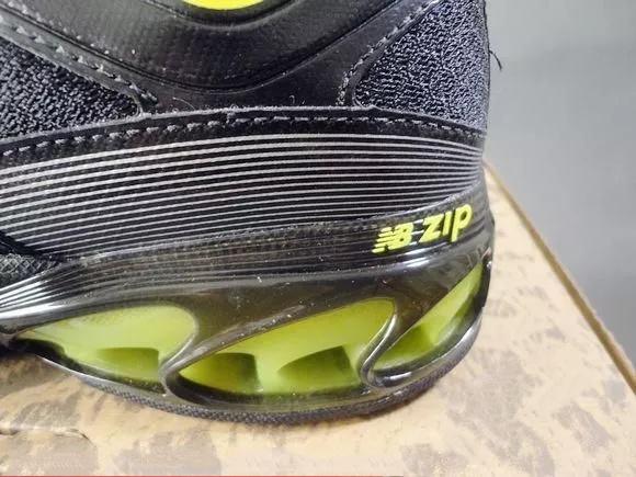 2006年,正值一百岁高龄的NB也推出了其第一款结构缓震科技——N-Zip作为其100岁的献礼。N-Zip避震系统由鞋底中间区域内排列的多重避震支柱片构成,它是由能够带来充分震效果的高弹性材料经热塑加工而成,当足跟触地时N–zip避震支柱片提供了最佳的冲击保护,N-zip在吸收能量后的反弹,提供了很好的回应感。脚跟中间区域内排列的避震支柱片经过特殊设计,能够限制每次足部触地时躁关节产生多余的翻转动作。并且据其官方宣称,这种结构十分耐用,经过严酷的测试后仍然可以保持出色的弹性。