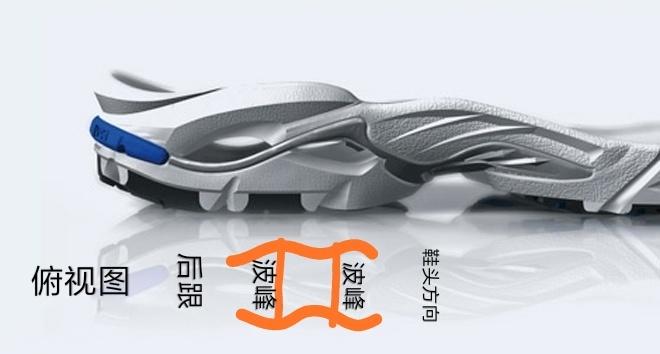 (至于李宁弧个人认为和锐步被戏称为猪大肠的Zig-tech大同小异,都是将泡棉材料做成波浪形状来提升缓震效果,不如李宁弓有代表性,这里就不提了。)