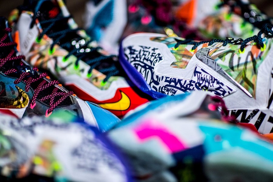 LeBron 12 “What The” 的非对称撞色风范延续了一贯夸张大融合的风格,但鞋款整体风格相较于以往却略显低调。而最为特别之处在于将多个 LeBron 球鞋之外的经典元素融入,元素选择扩展的灵感则来源于勒布朗·詹姆斯在成长过程中的深刻记忆和对体育精神的致敬。例如他青年时代的偶像和喜爱球队、同橄榄球运动的紧密渊源、对纽约布朗克斯区的敬意、以及对家乡俄亥俄州的自豪之情,都在这一双球鞋中体现。