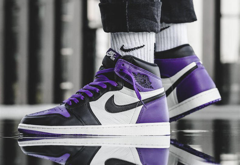 黑紫脚趾,兼具颜值和气质, Air Jordan 1 “Court Purple”将今年流行的紫色融入到Air Jordan 1上,承袭黑红脚趾的配色方案,将紫色替代红色,骚气十足。