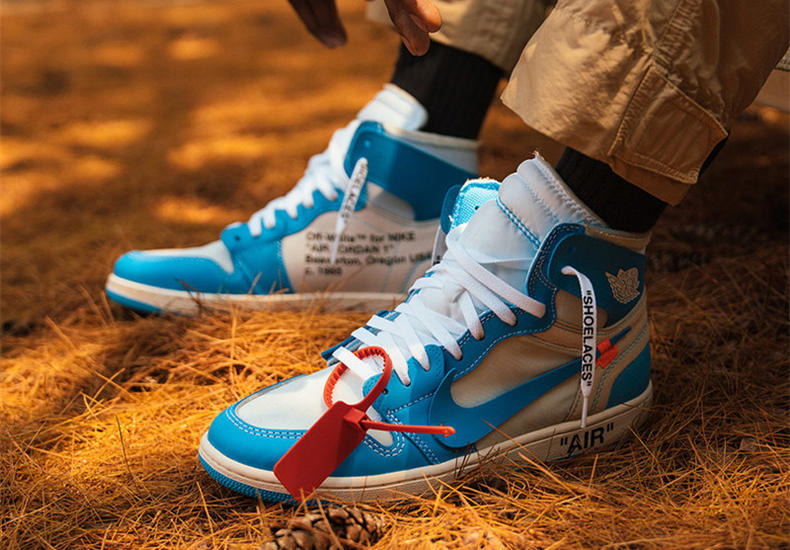 黑绿脚趾和黑脚趾一样,采用同样的方案,但是原谅色的加持,是不是会更显骚气和独特呢。另外也迸发出无限的活力和生命力。6、OFFWHITE x AJ1北卡蓝
