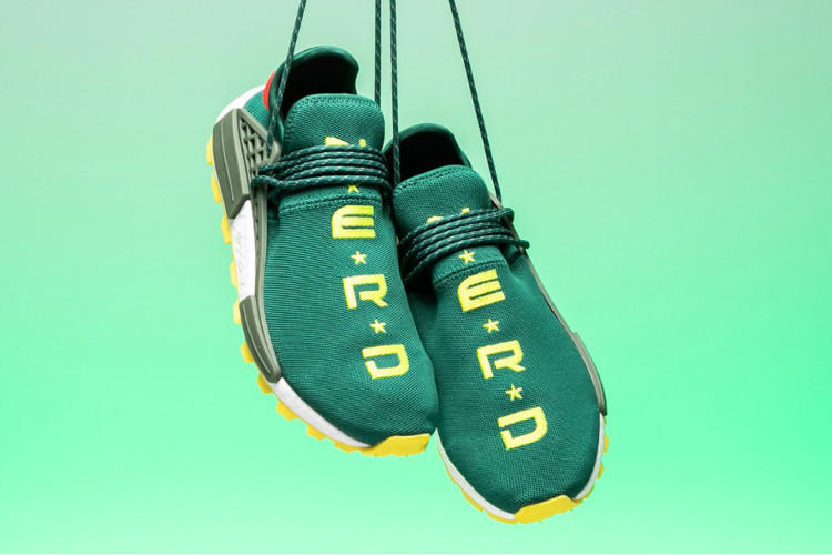 在去年,以美国潮流展会ComplexCon独占配色身份现身的N.E.R.D配色Hu NMD,开启了以菲董乐队为主题的adidas Hu NMD N.E.R.D系列。在释出纯黑配色、鸳鸯配色和红蓝配色之后,一款巴西风情既视感的N.E.R.D. x adidas Pharrell Williams NMD Hu Trail“Green/Yellow”,以绿色鞋面点缀黄色刺绣的色彩搭配进行呈现。作为N.E.R.D主题菲董联名Pharrell x adidas NMD Hu Trail系列中的一员,鞋款的价格自然也是不便宜,以$1274美元的价格成功闯入榜单。