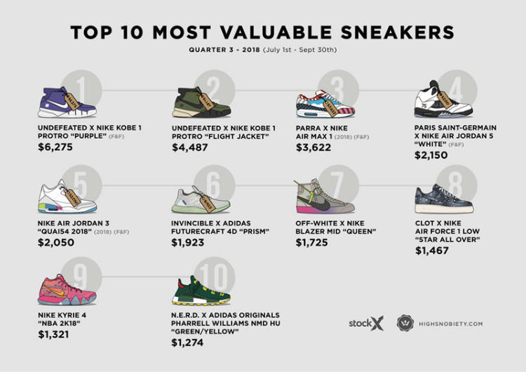 球鞋交易平台StockX携手德国著名潮流艺术网站Highsnobiety,按照惯例为我们带来第三季度最贵球鞋排行榜单。被亲友限定版本鞋款占据半壁江山的此份榜单到底谁才是王者?让详细的数据告诉你答案: