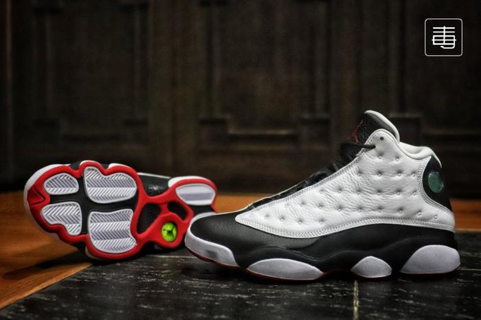 乔丹在1988年的扣篮大赛里穿着的就是这一款白水泥配色,这次的复刻在左脚鞋底呈现了一条红道,致敬罚球线扣篮的经典场景!