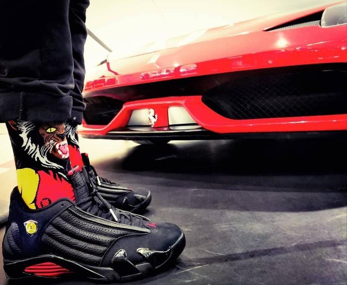 值得一提的是AJ14的灵感来自于法拉利跑车,红色也是法拉利的一大经典配色呢!
