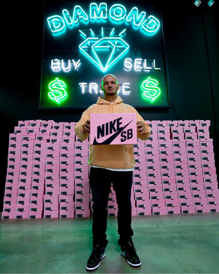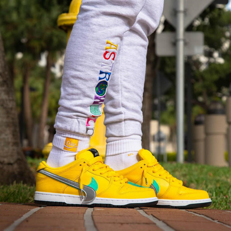 Nike SB Dunk系列和美国街头滑板品牌Diamond Supply Co.这两大植根于现代街头滑板运动的品牌,在2005年双方基于对滑板运动、文化和滑板鞋的热爱,围绕产品和滑手故事展开合作,带来了Diamond Dunk Low系列。不因时间流逝而褪色的叫做经典,作为一直以来都是Dunk收藏家们的争先收入囊中的高人气鞋款,主理人Nicky Diamonds为大家带来了一双黄色的Diamond x Nike SB Dunk Low,作为仅在ComplexCon会场发售的特殊版本,不足百双的稀少货量造就了其高昂的价格!