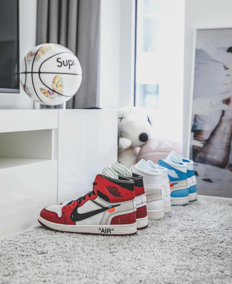 由Virgil Abloh与Nike携手打造的Off-White x Nike联名系列在去年横空出世,其火爆程度无需赘言,无论是系列中的哪一双鞋款都是大家争先购买的对象,更是带火了解构主义的设计手法,让其在球鞋设计中蔚然成风。Off-White x Air Jordan 1“Chicago”作为最初十双“The Ten”系列中的元老级鞋款,不仅斩获了当年“年度最佳鞋款”的荣誉,更是为之后纯白配色和北卡配色的Off-White x Air Jordan 1奠定了基础。三双Off-White x Air Jordan 1中融合了经典气质与全新设计的芝加哥配色和仅在欧洲发售的纯白配色,价格一直都是稳定的保持在万元之上,即便被称作“倒闭蓝”的北卡蓝配色也高达¥7000 RMB!