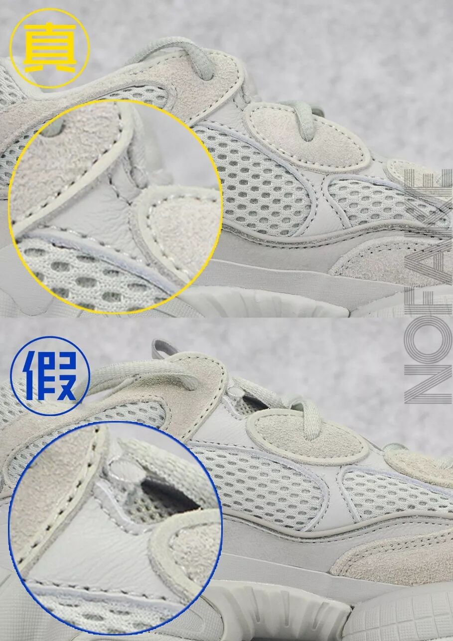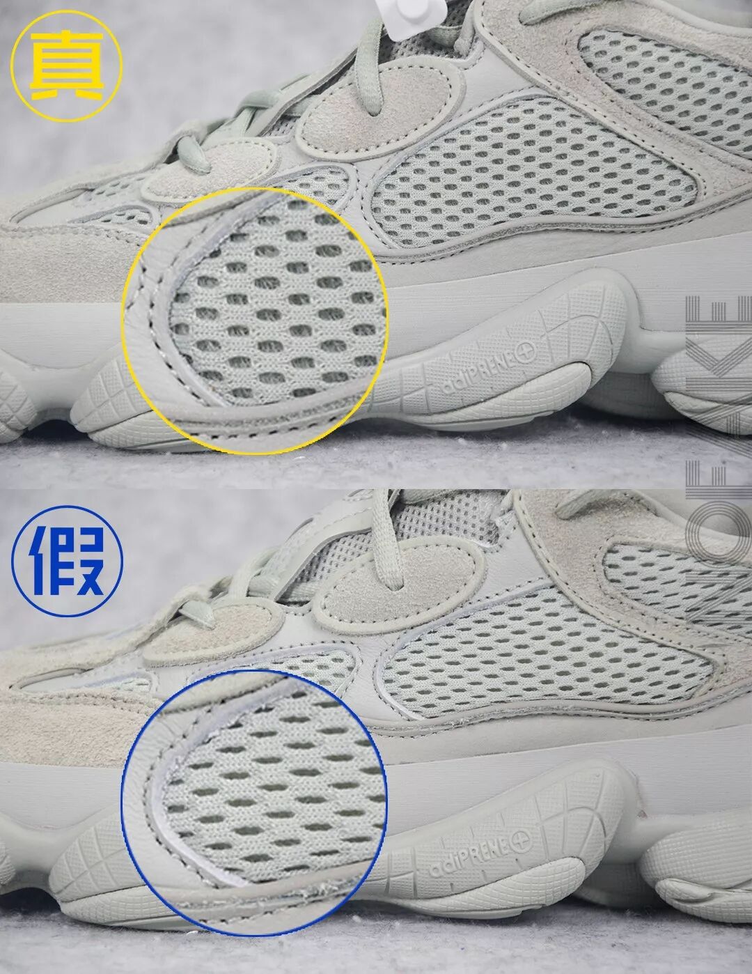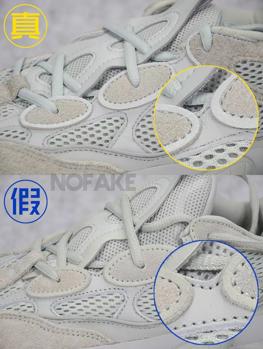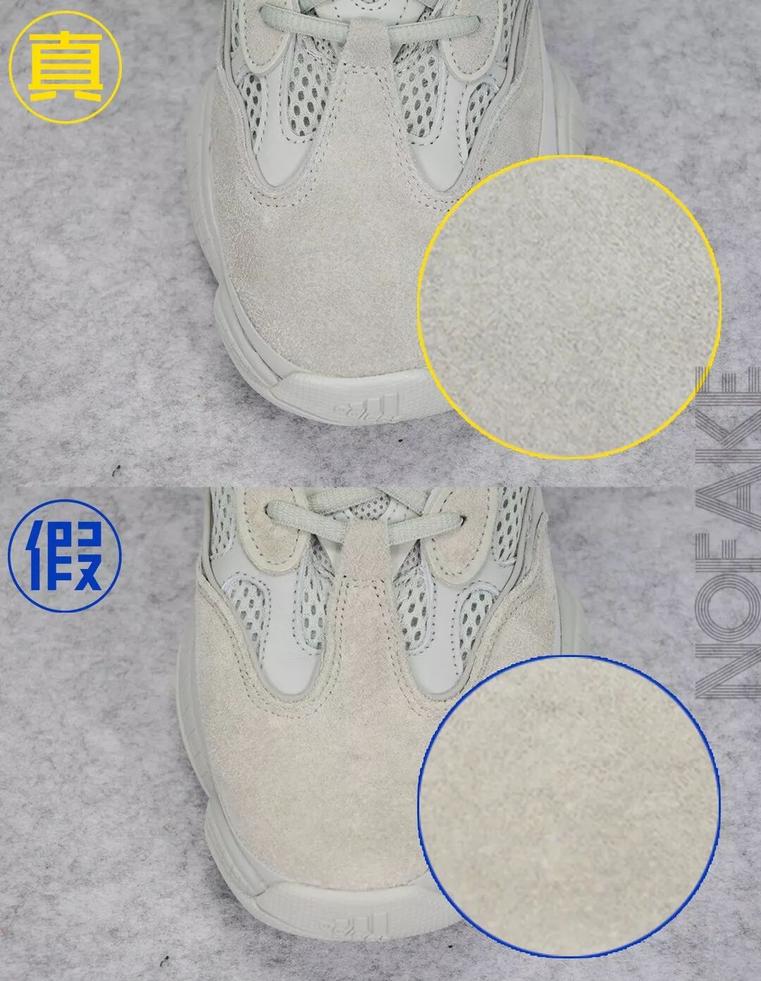 假鞋鞋盒侧标上“yeezy 500”的字体、位置和真鞋的都不同。
