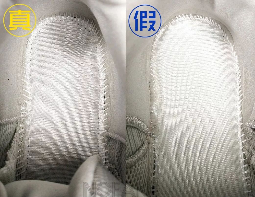 图片上无法看出,但是上手对比后能发现假鞋鞋垫比真鞋轻很多,并且弹性更差。