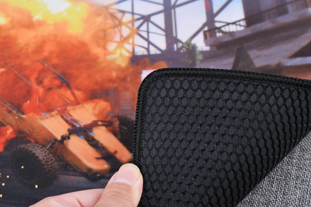 复仇女神S的设计是符合电竞FPS定位的,布面表面纹路精细,滑动鼠标时候顺畅而且表面没有毛刺,同时对鼠标拥有一定阻力作用,整体手感更适合射击游戏哪一类,同时鼠标垫使用了包边设计,长时间操作也没有割手的问题,底部也做了特殊的橡胶防滑纹路,保证鼠标垫不会在大动作操作后产生明显位移。