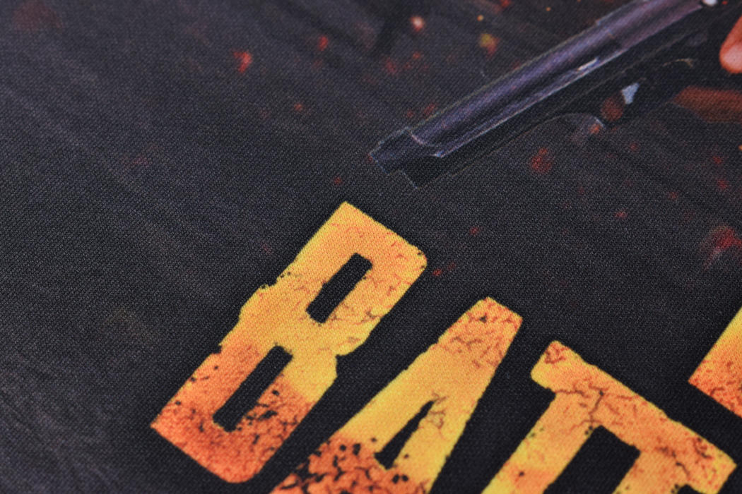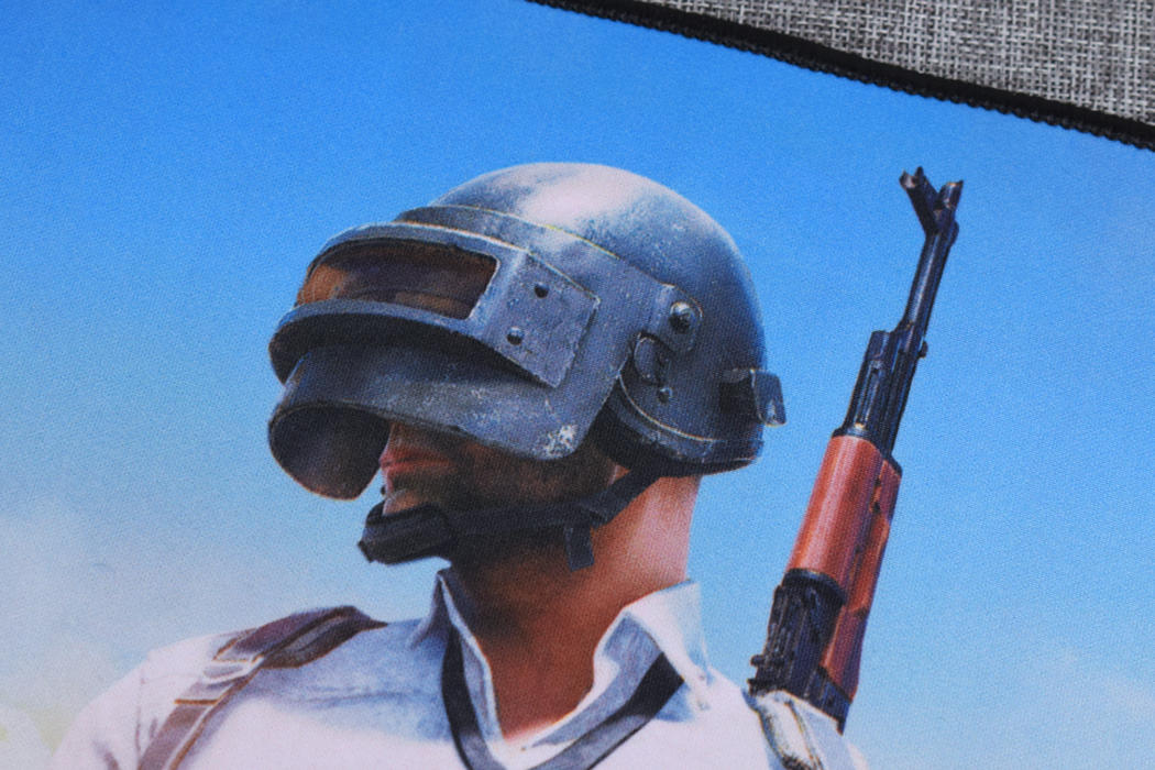 轮到复仇女神S鼠标垫,这次入手的定制版是专门的吃鸡图案,而样式正是PUBG绝地求生载入界面的主题画面,穿西装打汰,带三头背AK的形象,再加上真男人从不回头看爆炸的场景,让人印象深刻。