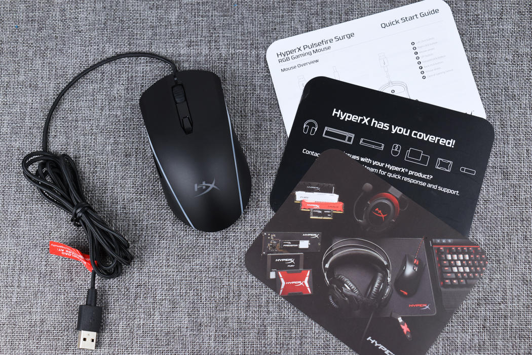 在附件方面,金士顿巨浪除了鼠标本体和产品箱说外,还包含HYPERX系列产品的宣传图,而复仇女神S鼠标垫则没有附件,话说回来,鼠标垫能附送什么附件呢?
