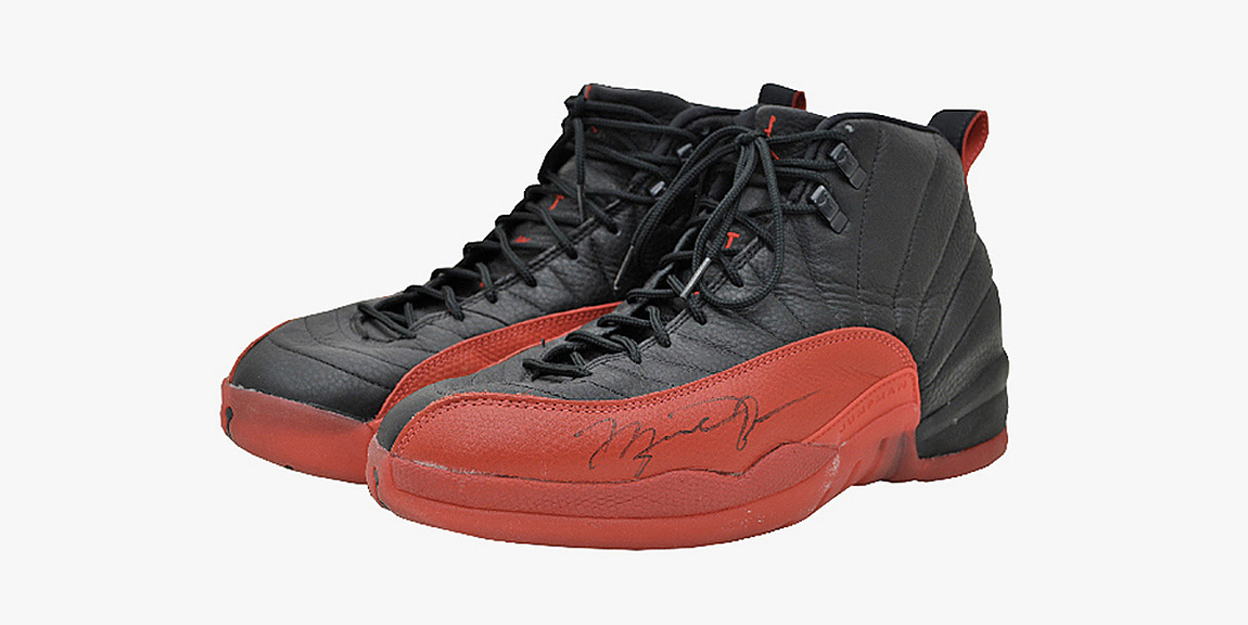 当年MJ穿着这双黑红拿下flu game时,爵士球童普雷斯顿.杜鲁门在MJ食物中毒期间,向他提供了苹果沙司,虽然MJ因为没有胃口所以并没有吃下,但赛后为了向这名爵士球童表示感谢,送给他脚下的黑红AJ12,并签上了MJ之名。