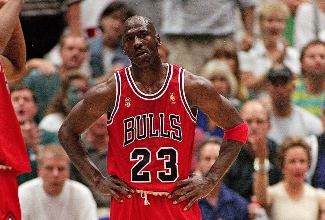 虽然MJ身体欠佳缺乏速度,但凭借永不言弃的信念和队友的完美配合,第二节结束之时,MJ砍下17分,带领球队领先爵士4分(43-49)