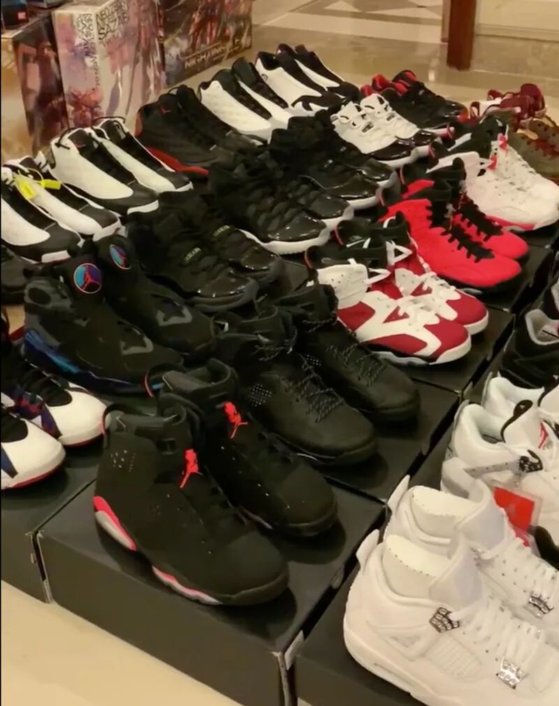 虽然找不到他穿球鞋的照片,不过尹正曾在微博晒出一段视频,其中出镜了几十双 Air Jordan 正代鞋款,可以看到都是非常经典的配色。
