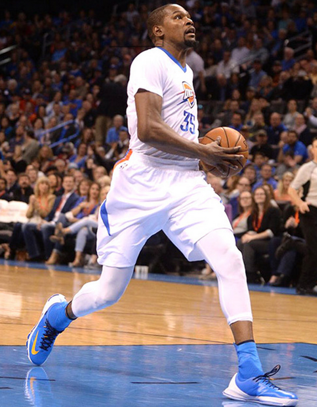 季后赛大伤归来的KD很快恢复了状态,这个具有后卫技术和速度的大个子在场上永远是巨大的威胁,虽然有着长人的身高但却有着全场惊人的奔袭距离,为KD设计的球鞋自然不能太拖沓。