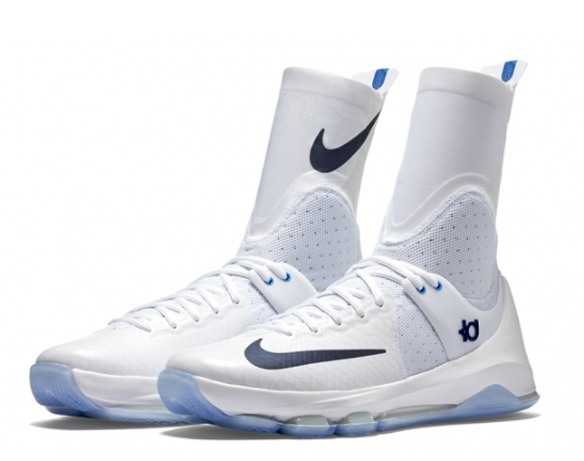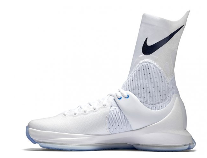 高帮的设计一眼看起来像是保护良好的内线鞋,但其实这个高帮只是为了让脚与鞋子更加贴合的一种类似紧身裤面料的设计,并不会给灵活性带来丝毫损失, 如果你和KD一样是球场不吝惜体力的灵动选手,那么它一定适合你。