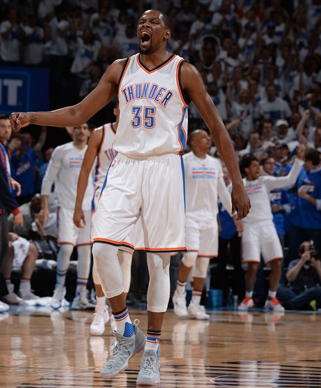 今年的西部决赛雷霆面对卫冕冠军勇士给我们带来的是万万没想到的3比1,以及更想不到的4比3被淘汰,开赛前相信大部分球迷都觉得勇士与雷霆整体实力并不是一个级别的,但是双少用认真的态度和实力证明了它们不会轻易放弃。而比赛中KD多次上脚这双KD9,更加厚实的全掌ZOOM以及编织鞋面的加入让我们对这双鞋充满期待。