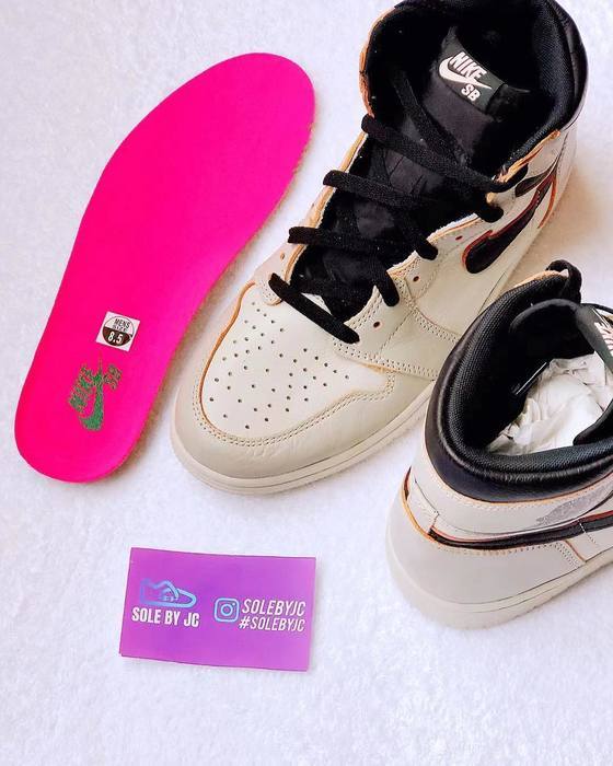 继近似湖人配色的设计之后,网上又曝光一款浅色版本Nike SB x Air Jordan 1 High。鞋身辅以黑色色块装饰,鞋面材质下层透现出隐藏着的(疑似)粉色底色。货号CD6578-006,预计四月发售。