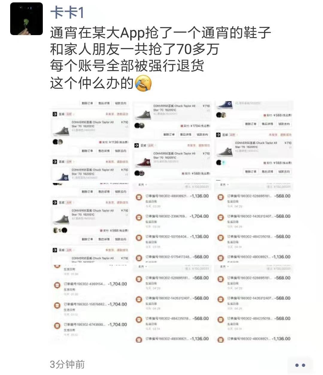而一直以来被各路潮流玩家们所嗤之以鼻的拼多多也出现了散户以及贩子们的扫货现象,不过最后却是意料之中的砍单。