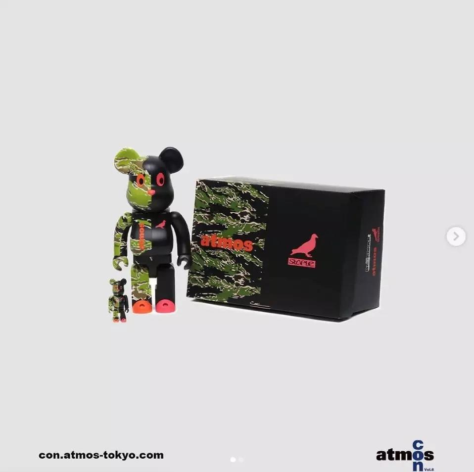 MEDICOM TOY BE@RBRICK x atmos x STAPLE 三方联名相信也是在现场热度最高的单品,尺寸 100% & 400% 的发售价为 13,000 日元,而 1000% 大小的发售价为 50,000 日元。