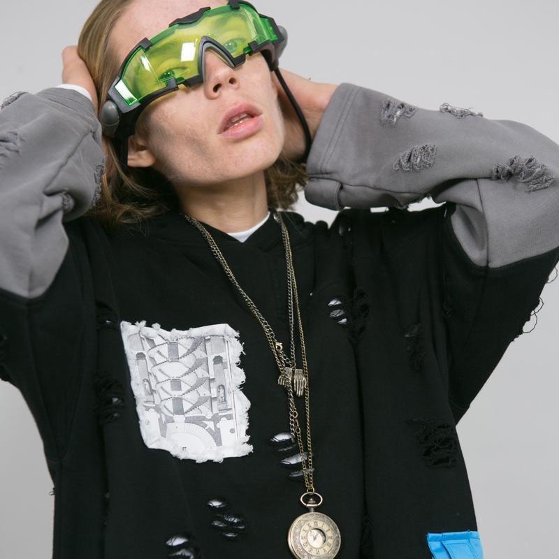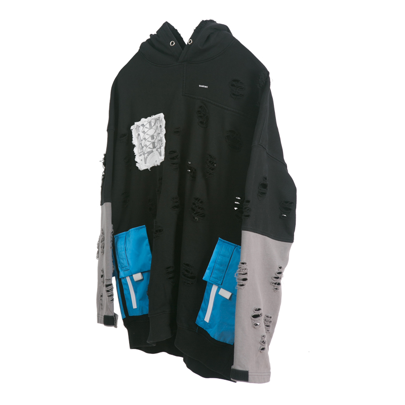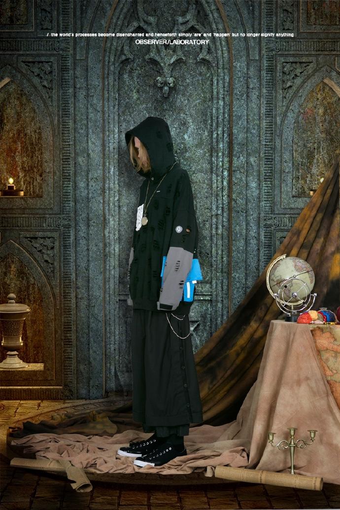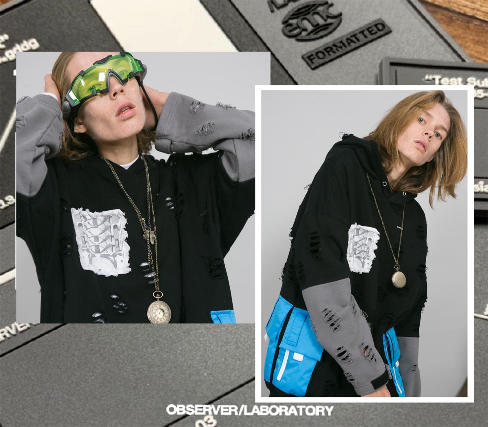 OBSERVER LAB 19S/S “虫洞战损”破坏撞色连帽卫衣